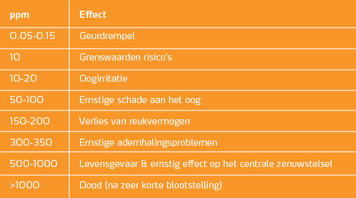 | Waterstofsulfide is een gif met een breed spectrum. Het werkt in op en verlamt het zenuwstelsel en blokkeert de cellulaire ademhaling. Bij hoge concentraties is één keer inademen al dodelijk. | H₂S is uitermate brandbaar. Het vormt een explosief mengsel met lucht. Contact met oxiderende producten kan leiden tot brand en explosie | Waterstofsulfidegas is verraderlijk. Doordat het zwaarder is dan lucht kan het zich ophopen op een laag punt in gebouwen van pompstations en zuiveringsinstallaties. Het vormt bellen in stilstaand afvalwater waardoor dodelijke hoeveelheden gas vrijkomen wanneer het afvalwater in beweging komt door de stroming in de buis. Het verlamt de reukzenuw en blokkeert de natuurlijke afweer van het lichaam ertegen |