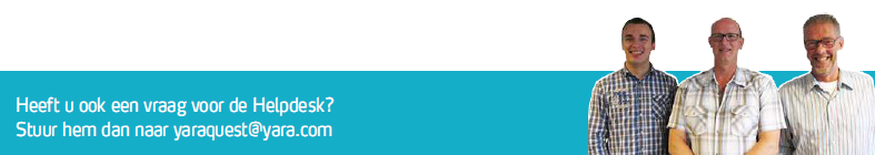 U kunt contact opnemen met de Yara-Helpdesk. (+31 (0)10 44 53 188) of mailen naar yaraquest@yara.com.